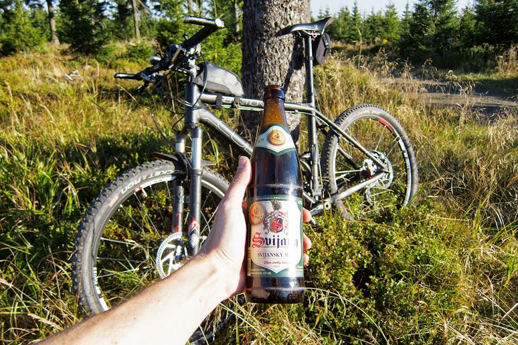 Planowałem zjechać szlakiem 1A do Strazne, ale potem czkałoby mnie parę mocnych podjazdów, dlatego przy Chałupie na Rozcesti poprowadziłęm rower drogą z zakazem jazdy. Po chwili spotkałem jadącego z naprzeciwka Czecha, zapytałem go o strażników i o kary, popatrzył na mnie dziwnie i powiedział, że spokojnie można jechać. Szutrowa droga prowadzi do zamieszkałych chat i jestem pewien, że jeżdżą nią samochody, dlatego nie rozumiem dlaczego zakazuje się tu jazdy rowerzystom.